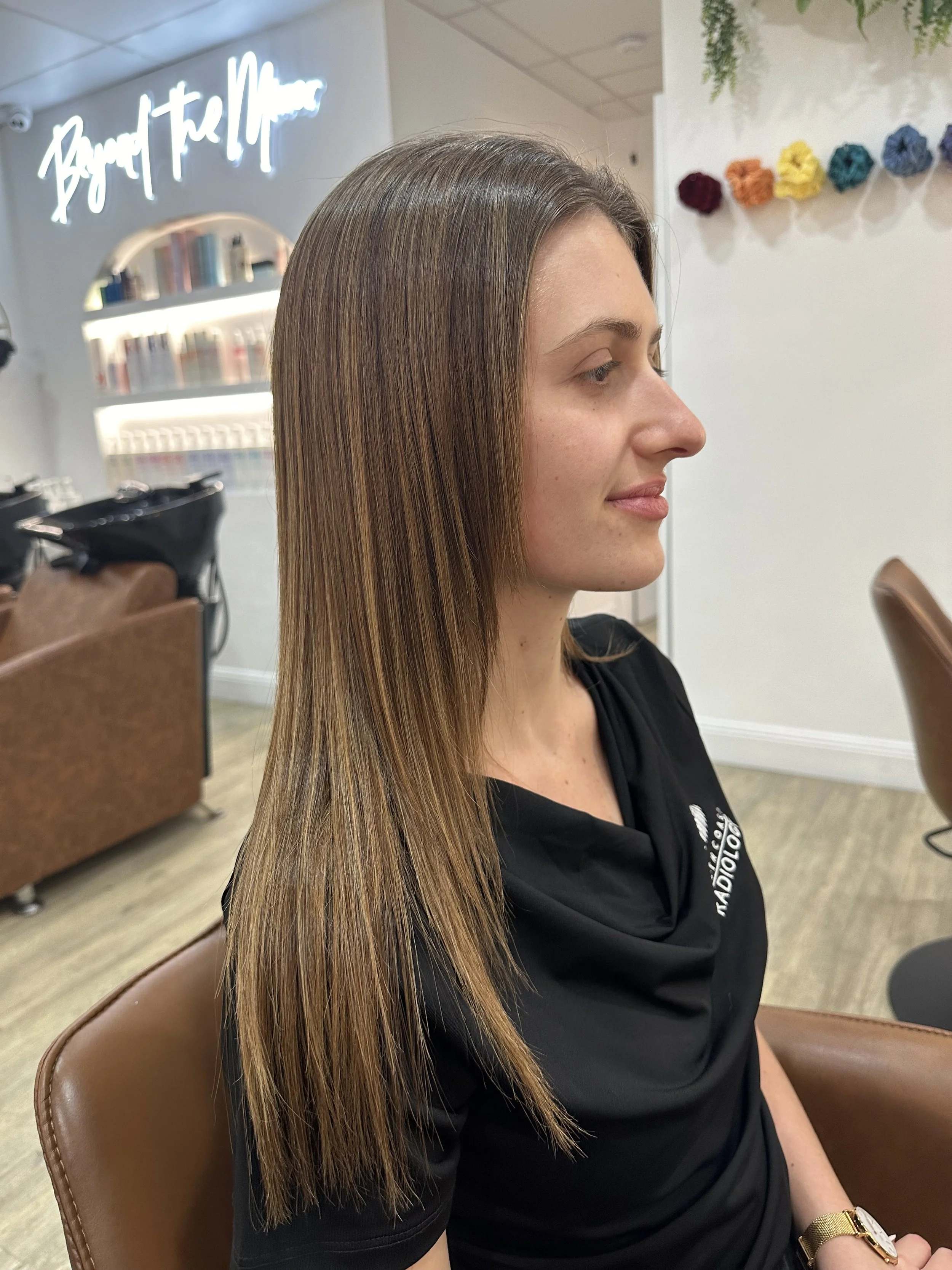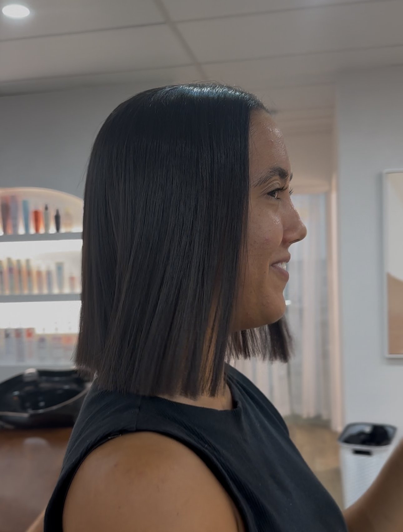 Depending on your hair type and goals, Nanoplasty can soften curl and wave and may create a straighter finish. We’ll always talk through what’s realistic for your texture and hair history before we begin.